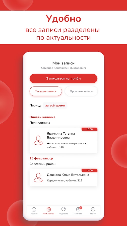 • медкарта обновляется онлайн;