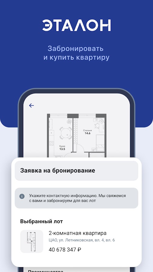 🔵 Помочь Вам выбрать, забронировать и приобрести квартиру, машиноместо или кладовую в любом из объектов Группы «Эталон» по всей России.