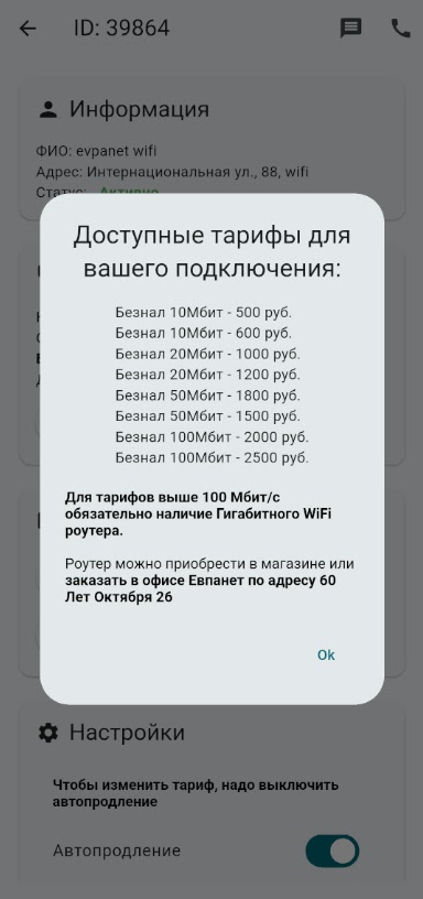приложение для абонентов компании EvpaNet