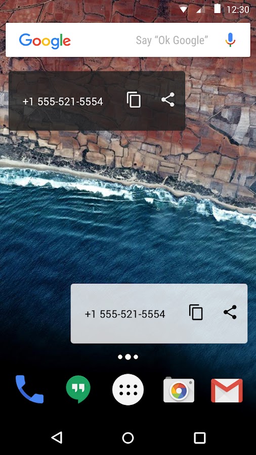 * возможность скопировать номер телефона в буфер обмена;