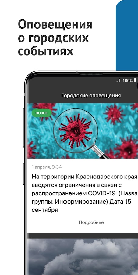Получайте оповещения о важных событиях города: афишу с расписанием городских праздников сообщения о ремонте дорог и объездных маршрутах, штормовые предупреждения от МЧС и многое другое.