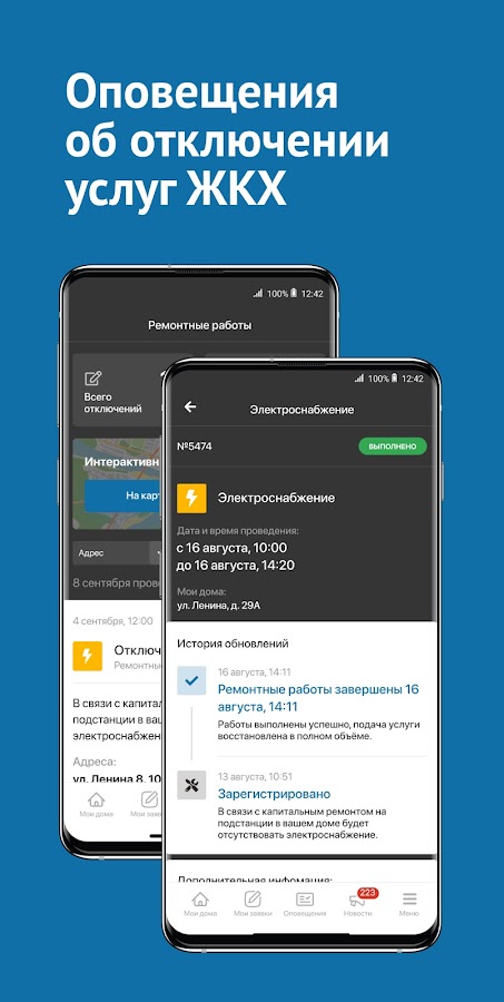 Узнавайте об отключениях электричества, отопления, холодной и горячей воды. В приложении всегда доступна актуальная информация по ремонтным работам для всего города. Подпишитесь на интересующие вас адреса и получайте звуковые уведомления с информацией по плановым и аварийным отключениям в вашем доме.