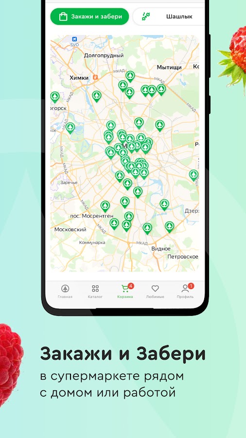 Самовывоз из супермаркета рядом с домом или работой в удобное время в наших точках выдачи заказов «Закажи и Забери».