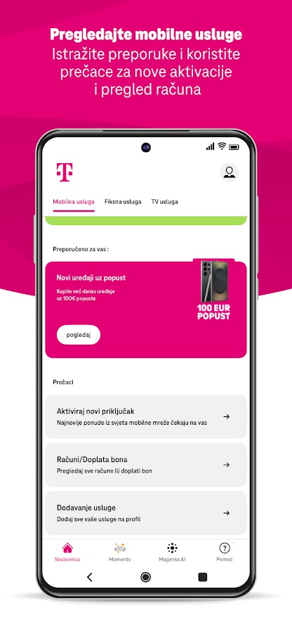 Приложение Moj Telekom содержит всю важную информацию о потреблении, услугах и счетах, последних предложениях и эксклюзивных преимуществах. Загрузите его и легко оплачивайте ежемесячные счета, ваучеры и опции, выбирайте тарифы и устройства и находите возможности, адаптированные для вас — в любое время и в любом месте.