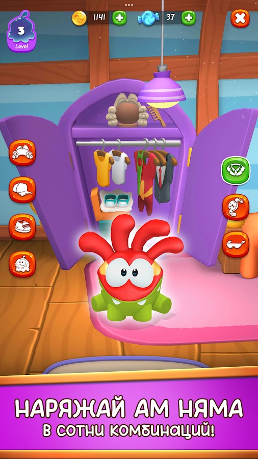 Для этого малыша мир крутится вокруг конфет 🍭. Там ты сможешь играть в игры с перерезанием верёвки и выиграть невероятные призы. Захватывающе, мы знаем! Играй в Мой Виртуальный Питомец Ам Ням, и ни один твой день не пройдёт без веселья и задора!