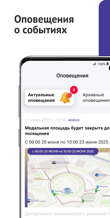 Получайте оповещения о важных событиях федеральной территории «Сириус»: афишу с расписанием праздников, сообщения о ремонте дорог и объездных маршрутах, штормовые предупреждения от МЧС и многое другое.