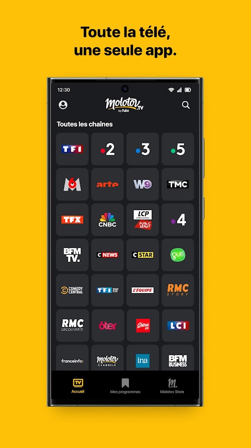 Одно приложение для всего вашего телевидения с Molotov. Тысячи программ в прямом эфире и по запросу: фильмы, сериалы, новости, реалити-шоу, спорт (включая Лигу 1+), документальные фильмы, мультфильмы и многое другое.