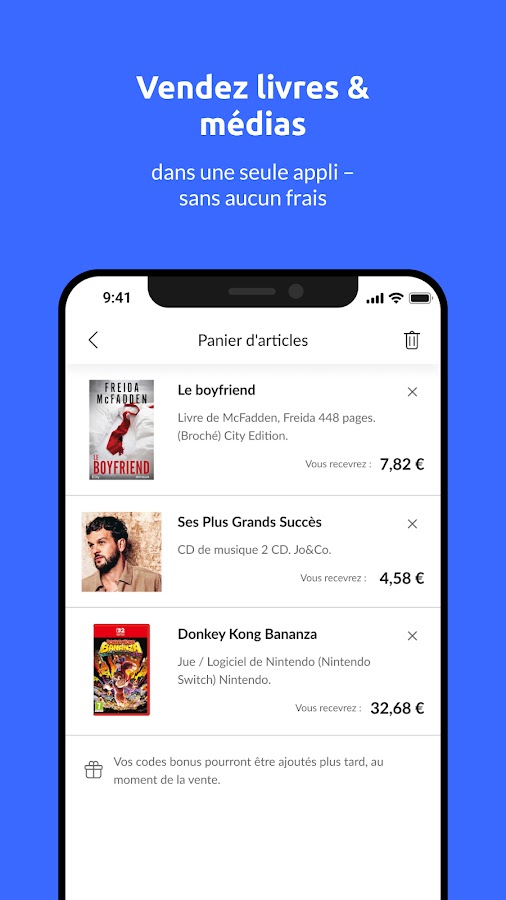 Примечание: цена покупки momox зависит от различных факторов, таких как наш инвентарь, цены покупки конкурентов и шансы перепродажи. Если вы оцениваете приложение momox на основе цен покупки, имейте в виду, что momox берет на себя расходы на доставку и риск перепродажи за вас.