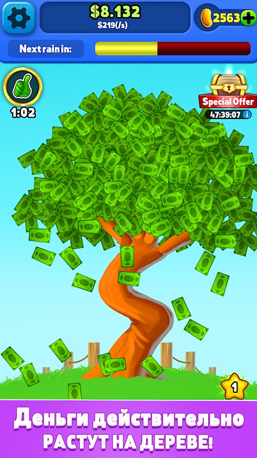 И кто сказал, что деньги не растут на деревьях? Начните с малого и разбогатейте, ухаживая за собственным сказочным ДЕНЕЖНЫМ ДЕРЕВОМ – природной аномалией, которая не оставит вас равнодушным. Наймите садовников, прикупите инвентарь, удобрения и бонусы, чтобы вырастить своего маленького монстра и, в конце концов, стать МИЛЛИОНЕРОМ!
