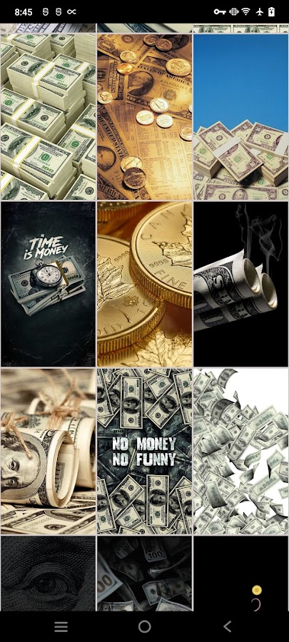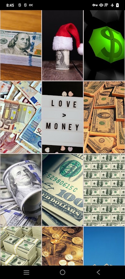 • Поделитесь богатством: нашли обои с деньгами, которые вам нравятся? Поделитесь им с друзьями прямо из приложения, распространяя атмосферу процветания.