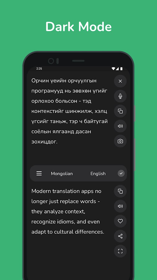 • Мгновенный перевод: получайте быстрые и точные переводы с монгольского на английский и наоборот, идеально подходящие для повседневного использования.