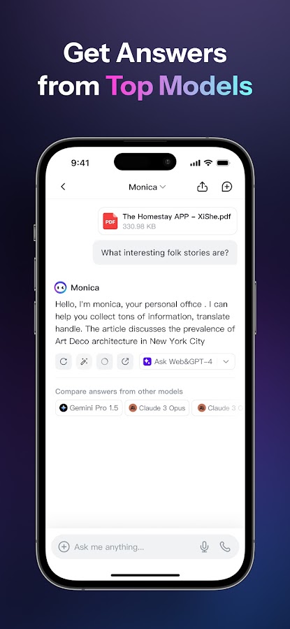 Скачайте приложение Monica AI: Ultimate AI Assist для Android бесплатно - последняя версия (5.13.1) уже доступна для установки на ваш телефон или планшет.
