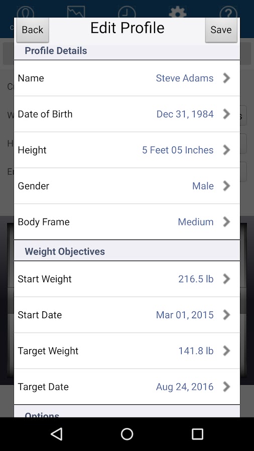 Это приложение также предложит расчет идеального веса и рекомендации по количеству времени, необходимому для достижения этой цели, на основе вашего текущего веса, роста, телосложения, пола и возраста. Вы можете, конечно, изменить предлагаемые целевые показатели, исходя из собственных планов.