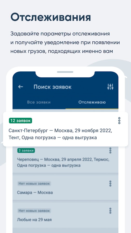 Присылаем пуши, если по вашему направлению появились новые грузы.