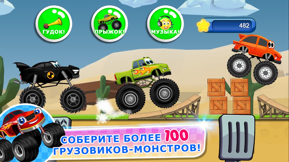 Более 100 крутых грузовиков-монстров на 42 уровнях подарят вашим малышам часы веселья. Всегда добавляются новые грузовики-монстры! Соберите их всех!