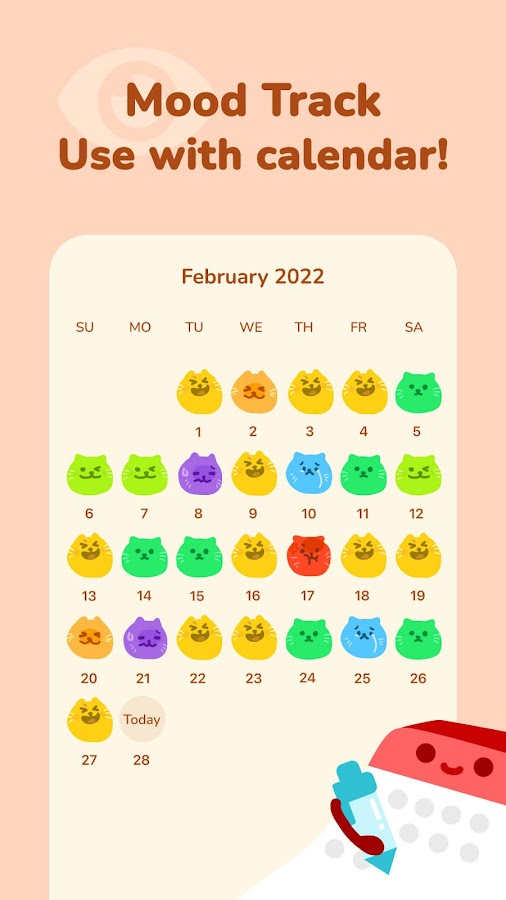 Присоединяйтесь к Moodpress, чтобы не только записывать свое настроение, но и сохранять свои секреты, важные фотографии и любые жизненные записи независимо от того, когда и где. Это также действительно потрясающая миссия по настроению — анализировать записанный вами дневник настроения.