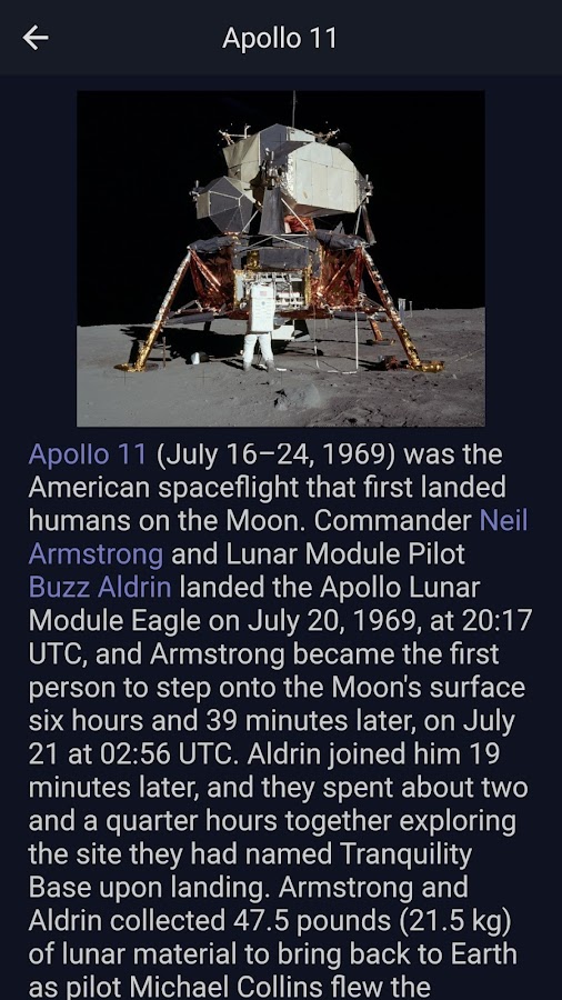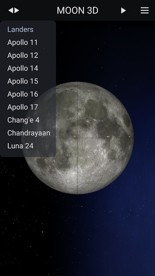 Луна 3D позволяет с легкостью исследовать всю поверхность Луны в высоком разрешении. Чтобы увидеть места посадки американских посадочных модулей или поближе рассмотреть основные кратеры и равнины Луны, просто коснитесь левого бокового меню, и вы мгновенно телепортируетесь к соответствующим координатам. Еще один тап по центральной панели — и вы сможете увидеть реальное изображение выбранного посадочного модуля и узнать более подробную информацию о его миссии. Галерея, данные о Луне, ресурсы, вращение, панорамирование, увеличение и уменьшение масштаба — это лишь некоторые из страниц и функций этого приложения.