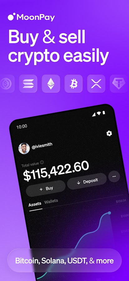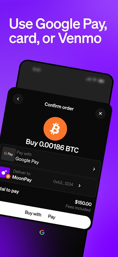 MoonPay, которому доверяют миллионы людей по всему миру, позволяет легко покупать, продавать и обменивать криптовалюту, включая BTC, SOL, ETH, XRP и более 170 других монет, с помощью Google Pay.