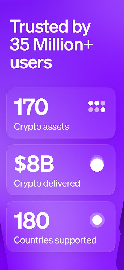 — Доступно более чем в 180 странах, более 170 криптовалют и монет-мемах доступны для покупки и торговли