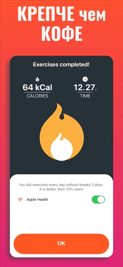 — Отслеживайте свою статистику — калории, время тренировки