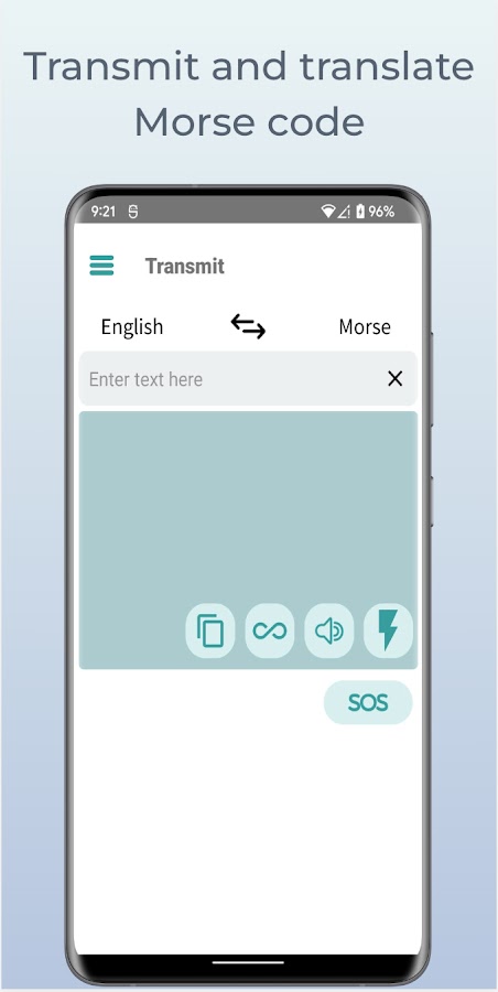 Для введенного сообщения пользователь может выбрать, следует ли передавать сигнал Морзе в виде света или звука. То есть используя либо вспышку, либо динамики.