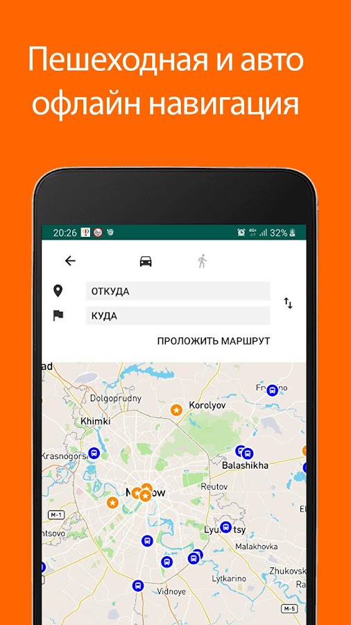 — Автомобильная и пешеходная GPS навигация в платной версии