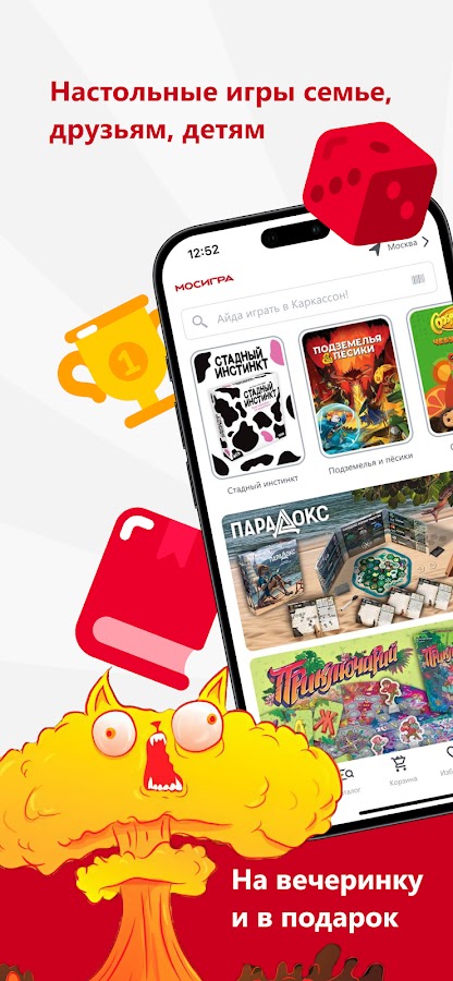 С приложением интернет-магазина Мосигра можно быстрее и удобнее покупать подарки детям, друзьям и коллегам: на экране только игры и ничего лишнего. В одном приложении — более 3000 настольных игр и подарков. Удобно заказывать, следить за скидками, акциями и новинками.