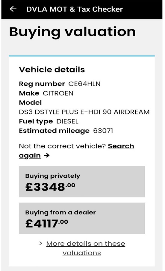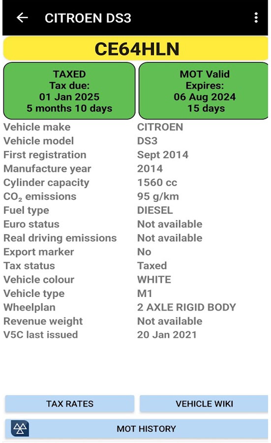 Это приложение значительно упрощает проверку собственных автомобилей или покупку подержанных автомобилей, поскольку вы можете просматривать записи истории налогов и техосмотра транспортного средства и даже проверять, находится ли старый автомобиль на дороге.