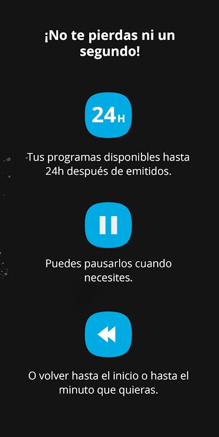 Вы пропустили начало любимого романа? С Live TV вы можете начать с самого начала или с любого момента по вашему желанию. Кроме того, вы можете поставить просмотр на паузу, чтобы продолжить его позже. С Movistar TV у вас есть свобода смотреть телевизор в удобном для вас темпе: новости, футбольные матчи, сериалы или прямые трансляции, которые вам больше всего нравятся.