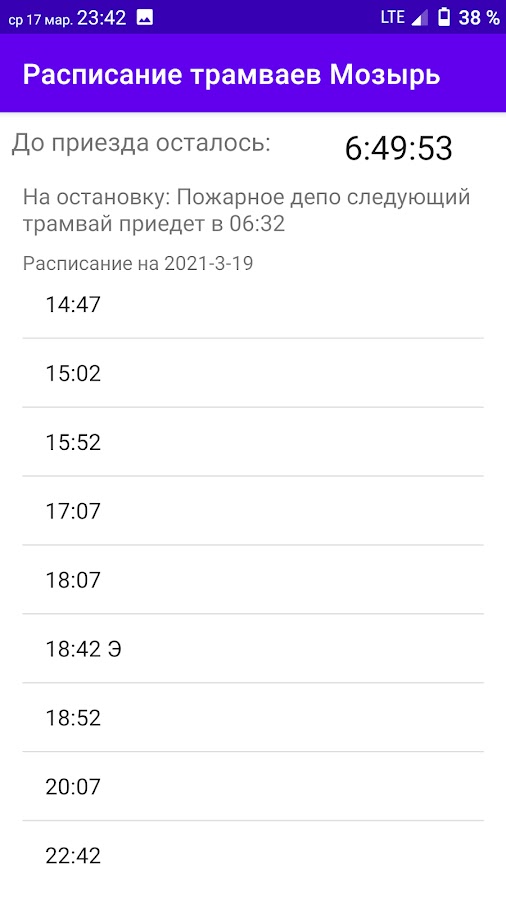 В приложении Вы сможете найти актуальную информацию о расписании движения трамваев в городе Мозырь. Выбрав нужную Вам остановку, Вы получите информацию о движении трамваев через нее, а также сразу увидите время ближайшего отправления.