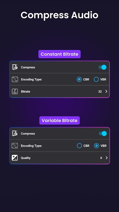 ** Преобразование и сжатие звука путем изменения скорости передачи и кодирования.