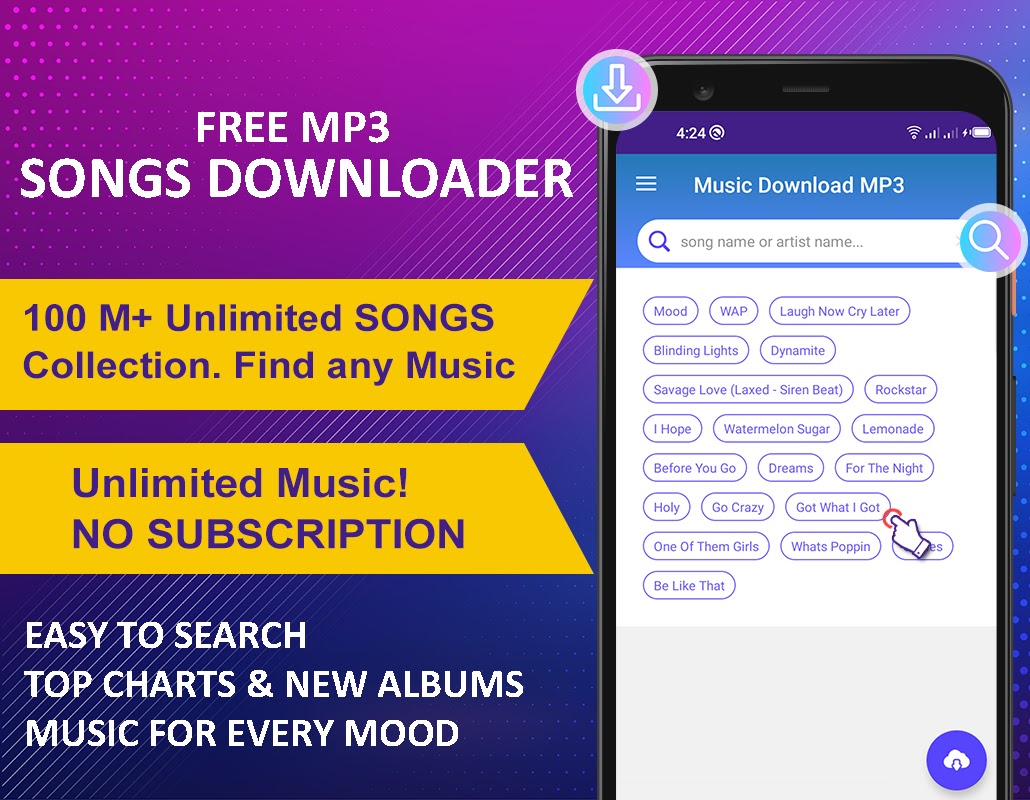 Music Download MP3 — Free MP3 Songs Downloader — лучшее приложение для удовлетворения всех потребностей меломанов, оно содержит почти все песни, которые вы хотите, слушайте их или сохраняйте на свое устройство, даже управляя загруженными файлами с помощью всего одного приложения.