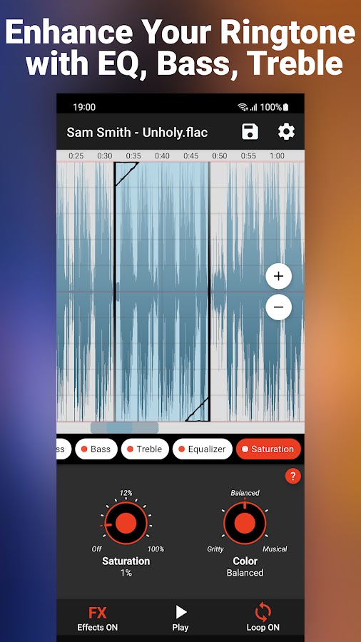 Благодаря технологии RSFX вы можете обрезать любую часть ваших любимых песен с точностью до 1 мс. Ваши входящие звонки будут звучать безупречно и идеально зацикливаться!
