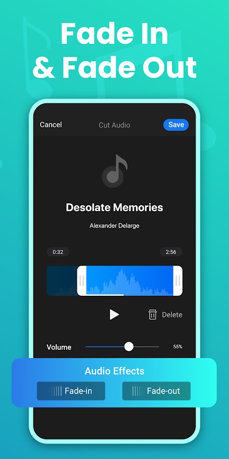 Регулировка громкости также поддерживается конвертером видео в MP3 и приложением для обрезки mp3, которое обеспечивает отличное качество с музыкальным редактором.
