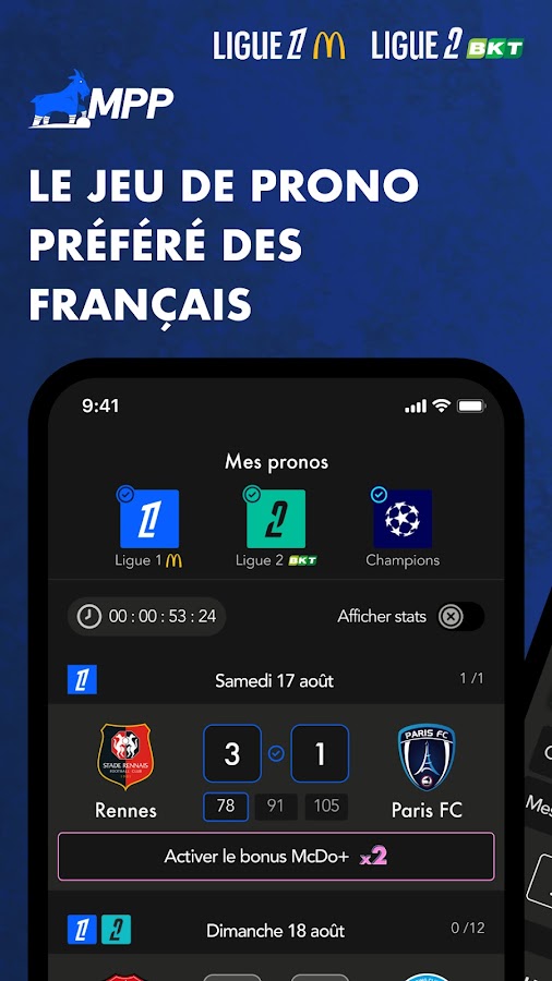 Прогнозируйте результаты McDonald’s в Лиге 1 ради развлечения и бросайте вызов своим близким (также доступно в Ligue 2 BKT и Champions).