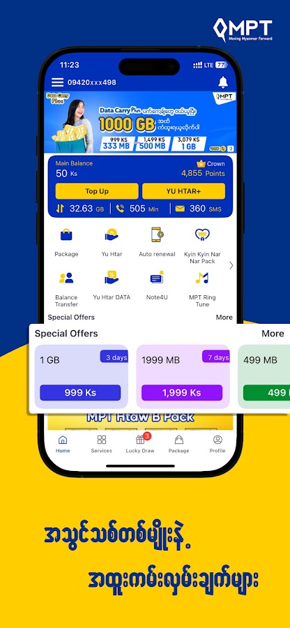 В MPT4U доступны новые функции: пакет данных с автоматическим продлением и пакет Kyin Kyin Nar Nar.