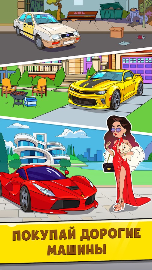 Попрощайся с нищетой и перебирайся в общежитие, а затем и в уютную квартиру. И кто знает? Может быть, в скором времени ты сможешь купить недвижимость и окажешься в шикарном таунхаусе, на роскошной вилле или, если уж очень захочется, на собственном острове. Этот симулятор бизнеса и денег откроет перед тобой уникальную возможность — прожить жизнь миллиардера, полную роскоши!