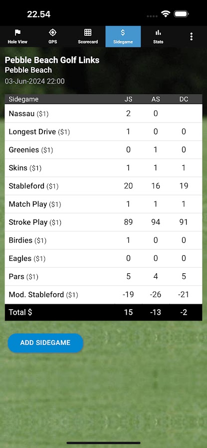 * Делайте ставки и играйте в популярные дополнительные игры, в том числе «Скины», «Нассау», «Матч-плей», «Строк-плей», «Стейблфорд», «Гринис», «Лонгест Драйв», «Берди», «Иглз».