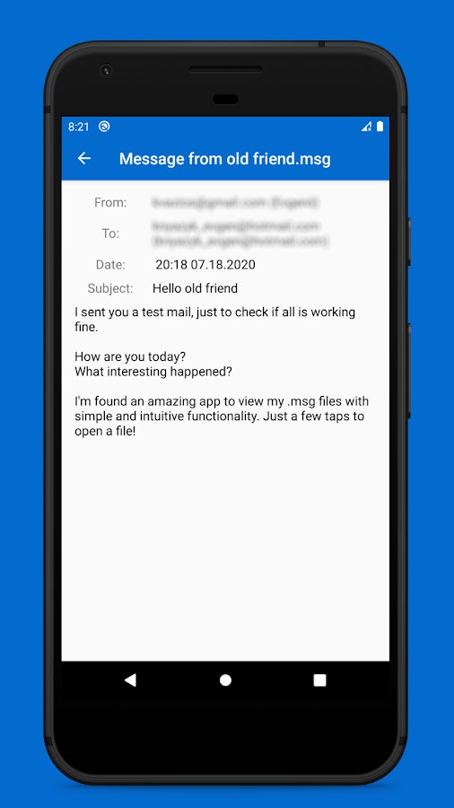 Скачайте приложение MSG EML File Viewer & Reader для Android бесплатно - последняя версия (2.3.3) уже доступна для установки на ваш телефон или планшет.