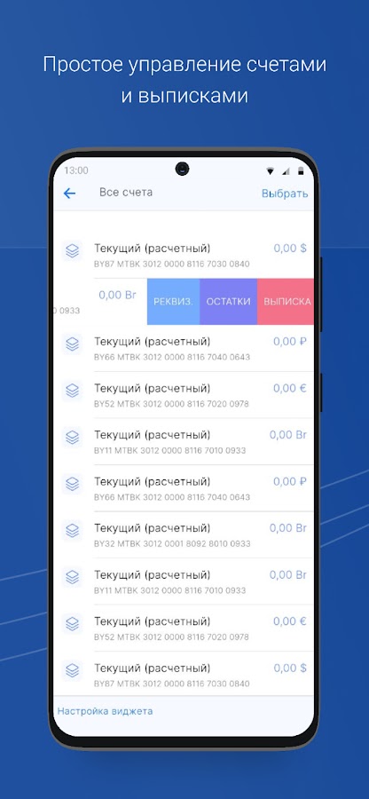 — формирование выписки по счету в разных форматах, печать выписки и отправка выписки на e-mail
