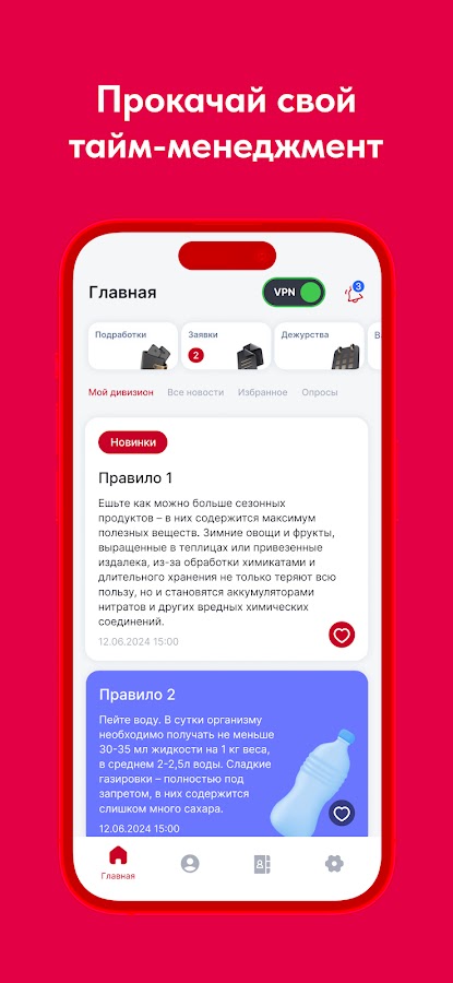 Узнавайте свежие новости, контролируйте свой график, сохраняйте важные контакты.