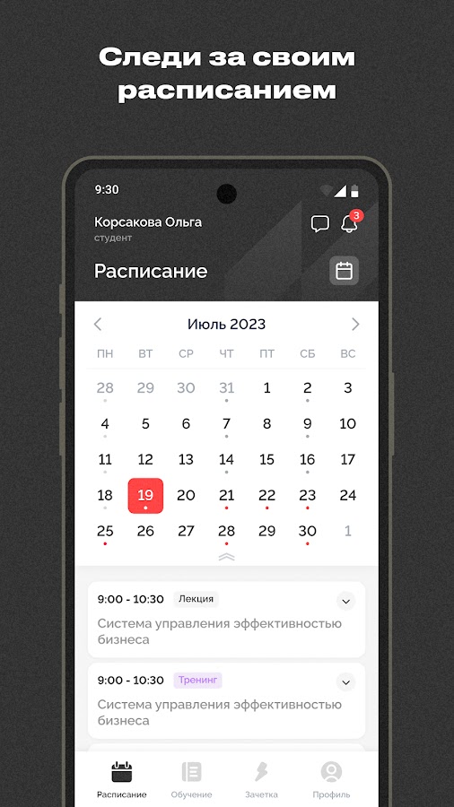 — Просматривать расписание занятий и учебные материалы дисциплин,