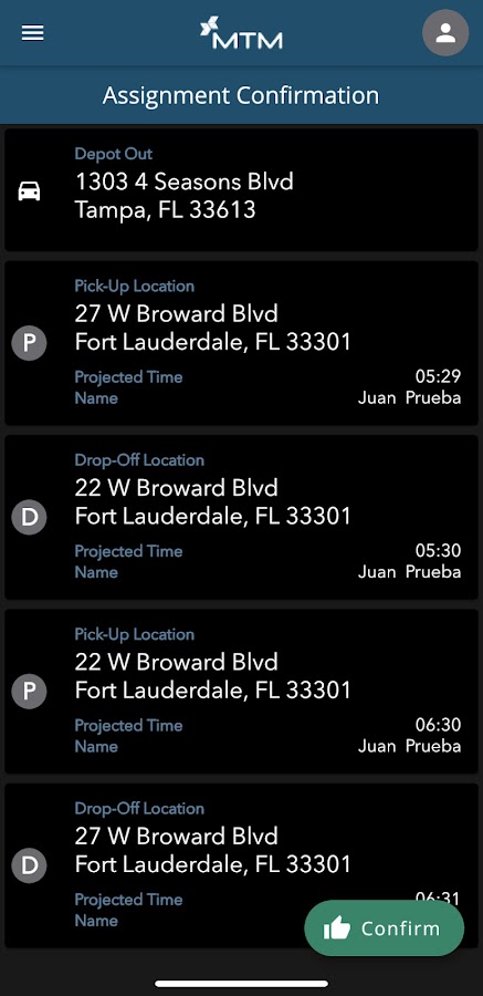 • Сводка по поездке в конце дня: количество остановок, миль, выполненных поездок, отмененных поездок, неявки участников, отслеживание поздних причин.