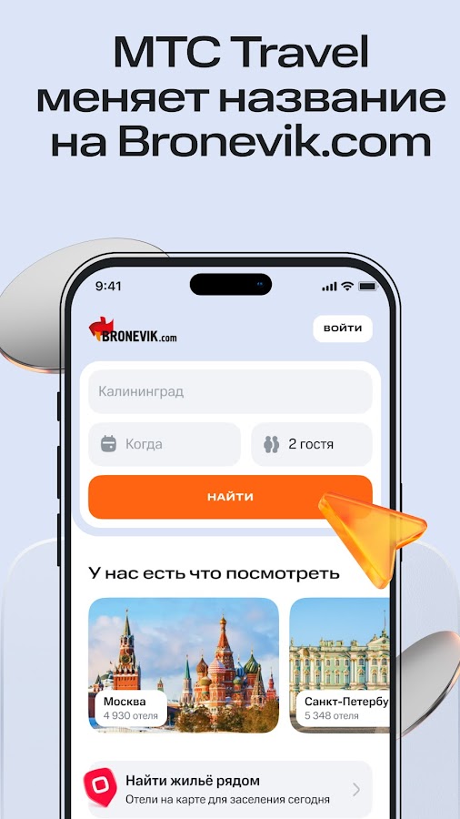 С приложением Bronevik.com бронирование отелей в России и за рубежом становится ещё удобнее! Мы отвечаем не только за поиск отелей и гостиниц по всему миру: у нас можно арендовать квартиру суточно и легко осуществить выбор отеля или гостиницы.