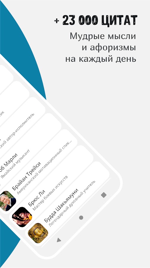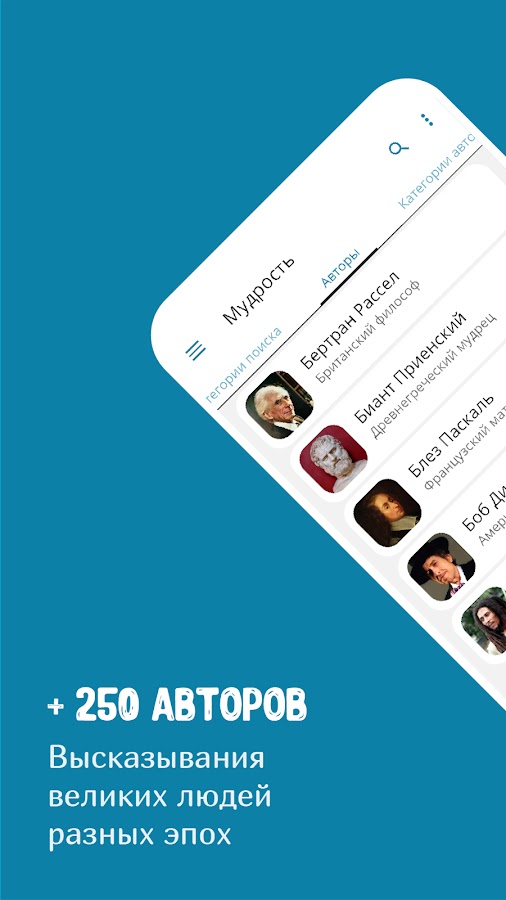 На данный момент в приложении вы найдете мудрые мысли, жизненные цитаты, афоризмы и высказывания великих людей: