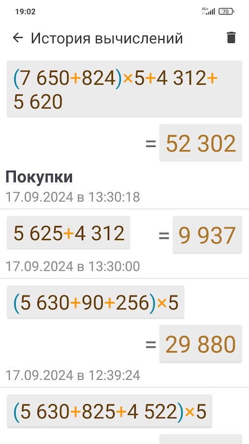 ✓ Быстро копировать результат в буфер обмена просто по нажатию на поле результата. Для вставки из буфера обмена есть специальная кнопка (📋). Это невероятно удобно с переключаемыми экранами (см. видео).