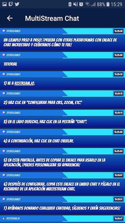 ¡Рекомендую restream.io, чтобы допустить различные визуальные эффекты! Pruébalo en others servicios y envía Sugerencias или более сложные проблемы, которые возникли.