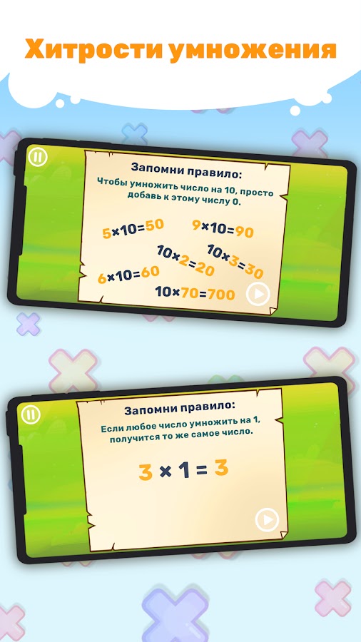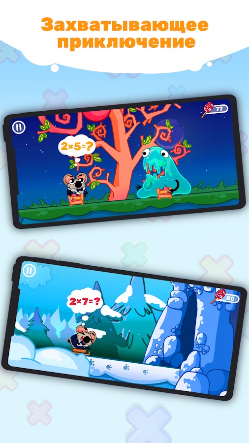 Путешествие в нашу игру — это действительно отличный способ выучить таблицу умножения, а если ребенок уже знает ее, то игра послужит ему прекрасным тренажером.