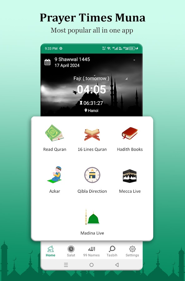 Скачайте приложение Muslim Prayer Time Quran Qibla для Android бесплатно - последняя версия (1.33) уже доступна для установки на ваш телефон или планшет.