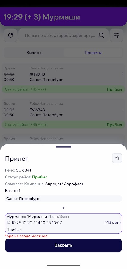Приложение неофициальное с данными о статусах вылетов и прилетов самолетов в аэропорту Мурманска.